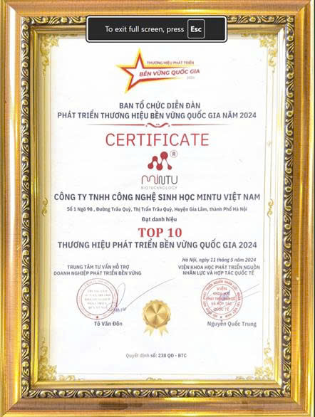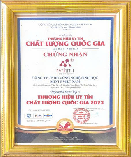 “MINTU VIỆT NAM” là thương hiệu Nông nghiệp đi đầu trong lĩnh vực công nghệ sinh học, đóng góp xây dựng nền Nông nghiệp an toàn, hữu cơ và bền vững. Điều đó thể hiện ở những Bằng Khen, Kỷ Niệm Chương cao quý do các Cơ Quan có thẩm quyền trao tặng là minh chứng cho hành trình đổi mới sáng tạo và ứng dụng công nghệ sinh học của MINTU Việt Nam.