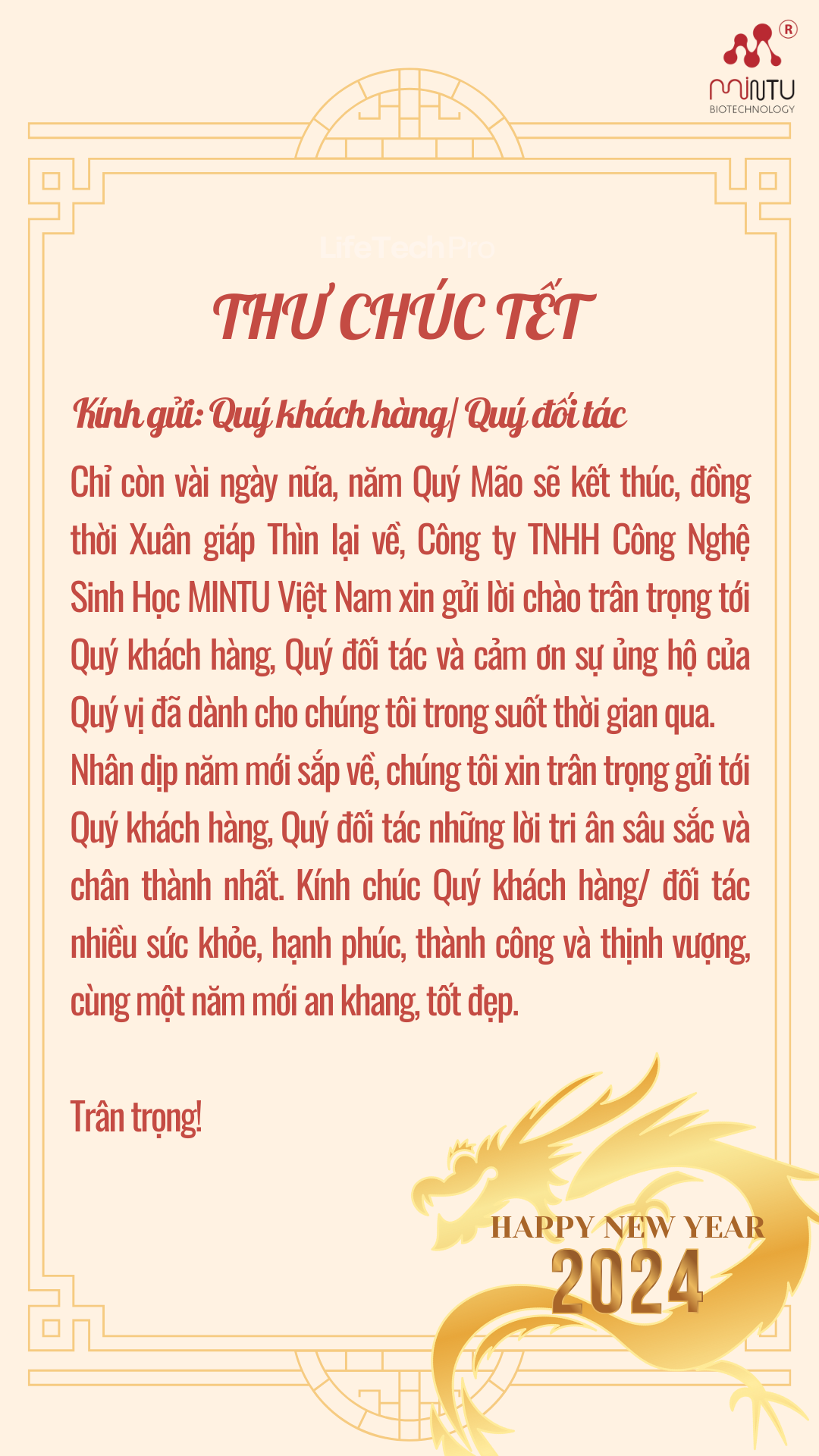 LỜI CHÚC TẾT 2024 MINTU VIỆT NAM GỬI TỚI QUÝ KHÁCH HÀNG/ ĐỐI TÁC